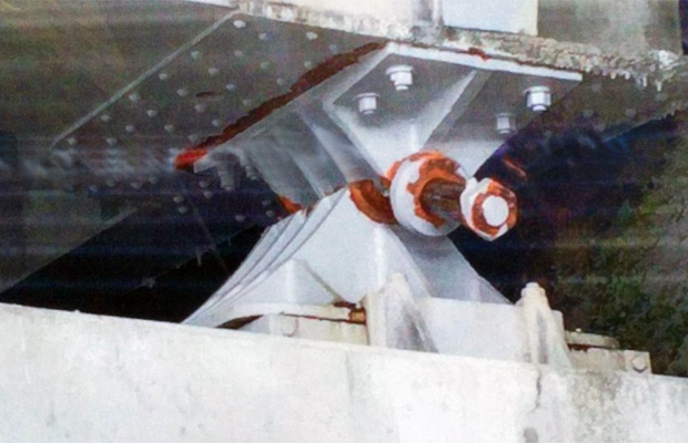 代表的な橋梁として白川橋を調査し、14日の前震では伸縮装置の段差のみで支承部の損傷は見られなかったが、16日の本震で支承部の損傷が確認された。