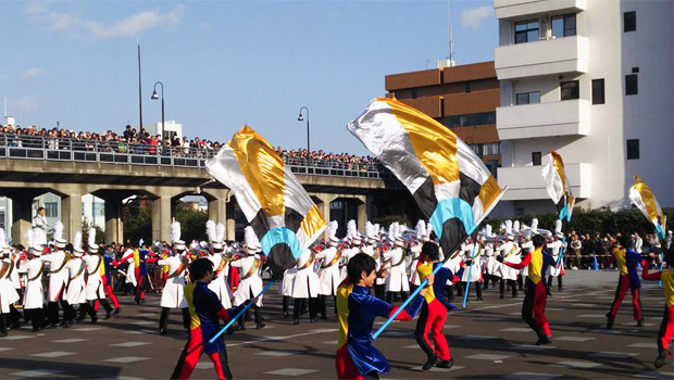 晴天のもと、マーチング・吹奏楽のさらなる普及発展を目指した「Music in Motion 2016」が、海を臨む象の鼻パークで開催されました。