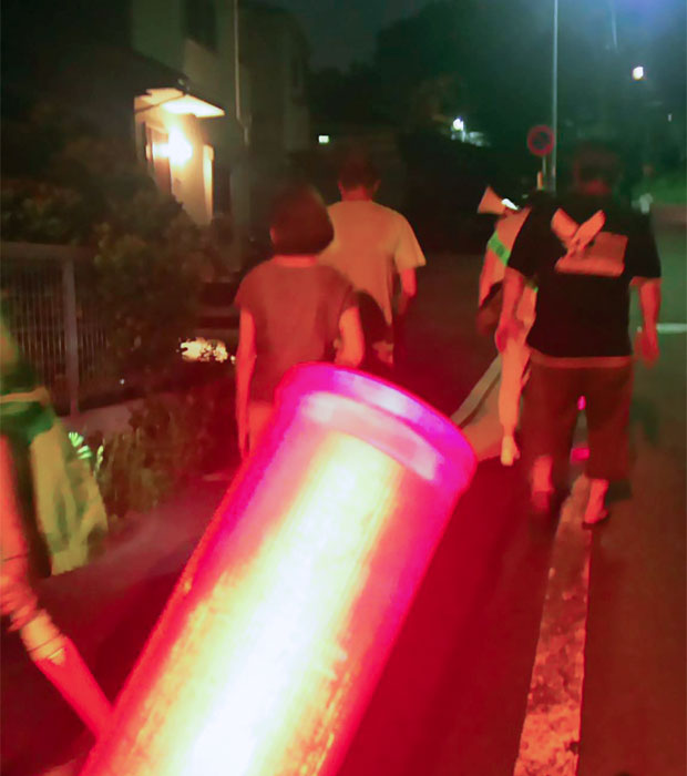 夜になっても蒸し暑さはおさまらない中、地元町内会による防犯・防火パトロールに参加しました。