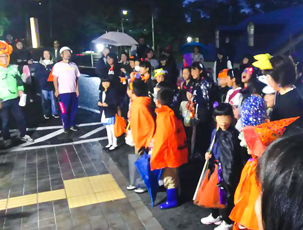 地域の飲食店を訪ね歩きお菓子をもらい、高齢者施設では入所者と交流する光景が微笑ましく見えました。