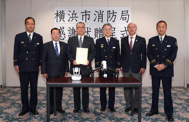 一般社団法人神奈川県ドローン協会から横浜市消防局に高性能なドローンが寄贈されました。