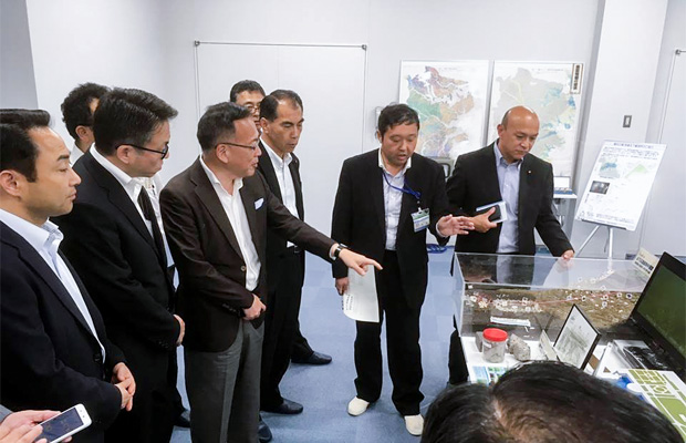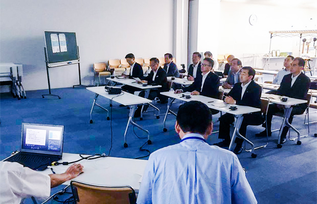 概要説明の後、都市暑さ対策や豊かな海づくり、生物多様性に関するパネルや模型、質量分析計などの試験室・機器を視察しました。