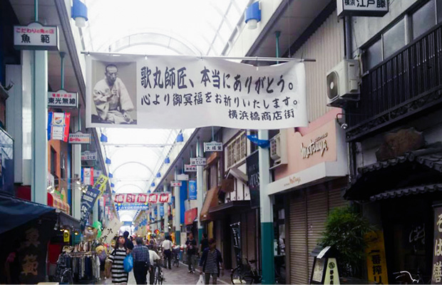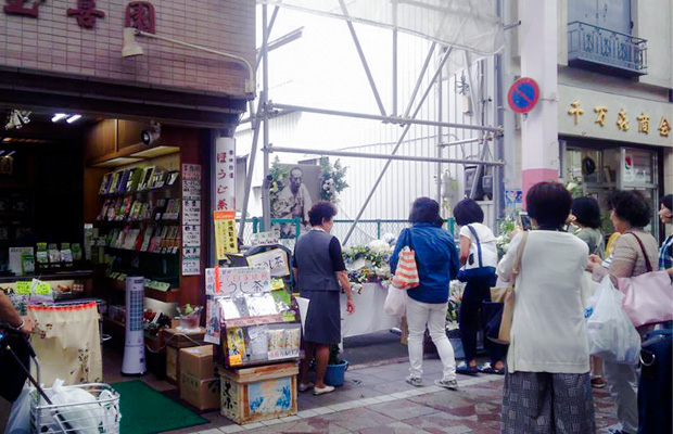 稀有な落語家・桂歌丸さんの訃報から2日目となる昨日も、横浜橋通商店街の中ほどに設置された献花台の前には列が絶えない様子でした。