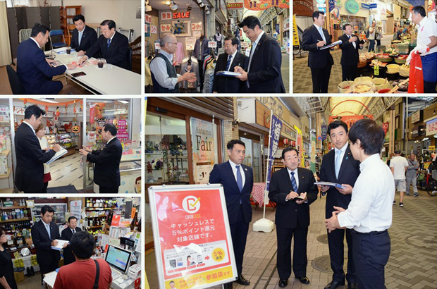 三浦信祐参議とともに同商店街協同組合の長谷川史浩理事長らと意見交換した後、各店舗で状況を伺いました。
