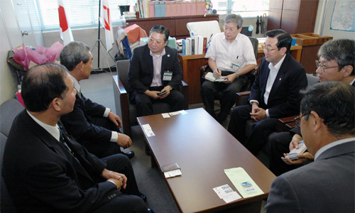 9月21日、箱根町の町議会議長、副議長、教育長、資料館長が誘客のために横浜市教育委員会などを訪れました。仁田まさとし市議も同席し、遺跡保存事業や教育活動への活用などについて意見交換しました。