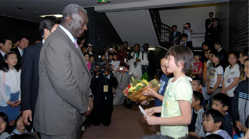 さらに、ガーナにおける取り組みと日本との関係に言及された後、「私はTICAD IVがアフリカの経済成長を促進し、教育、保健、人間の安全保障を強化することを望んでいます。それが環境と気候変動の問題に前向きのインパクトを与え、アフリカと日本に互いに恩恵をもたらす協力関係を強化するような行動計画を生み出すことを望んでいます。」と期待を寄せられました。