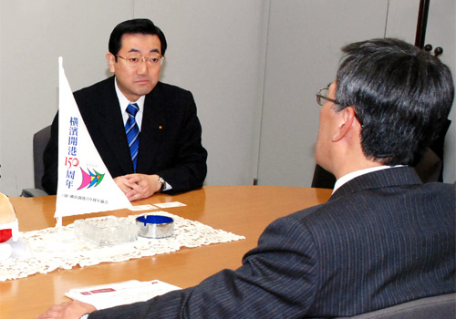 横浜市商店街連合会の岡野会長らとの懇談では、地域での課題について意見の交換が行われました。