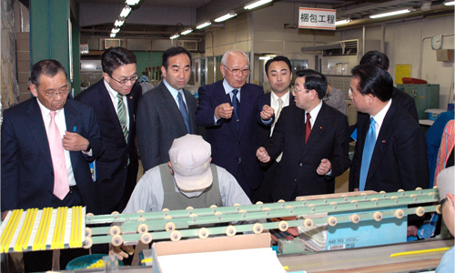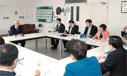 同社の取締役会長大山泰弘氏から、これまでの経緯と現在に至る様々な困難を克服する創意と工夫、その根底となる氏の障がい者雇用への理念が語られました。現場視察後にも活発な意見交換があり、最後に仁田まさとし団長から、氏への御礼とともに「本日の視察調査で学んだことを大いに生かし、障がい者雇用を拡大できるよう尽力していく」と決意が述べられました。