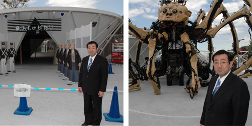 4月27日午前、開国博Y150の開会式が「Y150トゥモローパーク」で行われ、9月27日までの153日間の幕が開かれました。主催者らの挨拶に続き、総合プロデューサーの小川巧記氏とアートプロデューサーの日比野克彦氏から各イベントの代表者らと見どころが紹介されました。小野事務総長の開会宣言により、翌28日からのイベントがスタートしました。