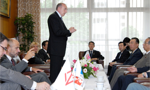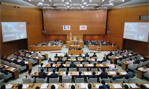 6月1日、横浜市と姉妹都市提携50周年を迎えたリヨン市長のジェラール・コロン氏が、横浜市会の本会議場において演説しました。昨年のガーナ共和国大統領に続き海外からの賓客による市会本会議場での演説は3人目となります。リヨン市長コロン氏は、現在、欧州の主要130自治体ネットワークEurocities委員長に就任しています。