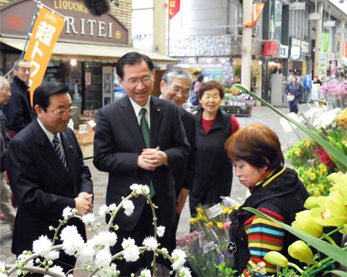 横浜市南区にある「横浜橋通商店街」(よこはまばし)を、12日午前、仁田まさとし市議は浜田昌良参議らと視察しました。惣菜、鮮魚、青果、花きを扱う各店舗を訪問し、厳しい景気・経済状況の中で、様々に工夫して経営に努力されている店主の皆様から、貴重なご意見やご要望を聴取しました