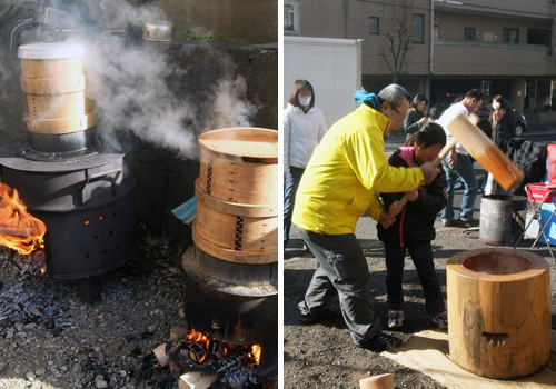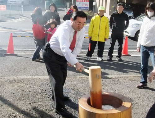 1月9日、恒例となる地域の餅つきが行われ、仁田まさとし市議が参加しました。子ども達が順番に大きな杵をもち、臼に移され湯気を出す炊きたてのもち米をついていました。その後、きなこ、あずき餡やからみ餅を頬張っていました。