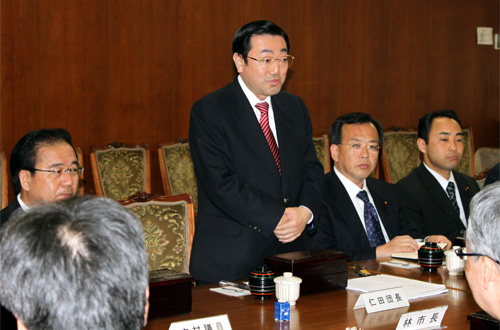 仁田団長は、昨年12月に発表した公明党の「新しい福祉社会ビジョン(中間とりまとめ)を林市長に手渡しながら、「孤立化から支え合いの社会を目指すビジョンに照らして、『つながり』を重視する市長の姿勢には共感する。市民がより豊かになる社会へ大いに議論したい」と応えました。