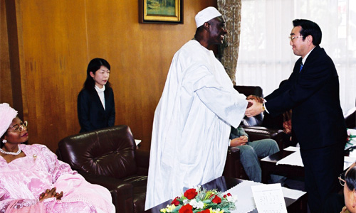 演説の中でゼ・メカ事務局長は、ITTOの活動内容を述べながら約20年間にわたる横浜市の支援と市民の皆様に深い感謝の意を表明されました。その上で、気候変動という地球規模の深刻な問題に言及され、その緩和への取り組み方法を生み出すことと次世代のために子どもたちへの環境教育を高めていくことの重要性を強調しました。最後に、平成20年5月に行われる第4回アフリカ開発会議(TICAD)が横浜市で開催されることへの祝意と成功に向けて横浜市の貢献への希望が述べられました。