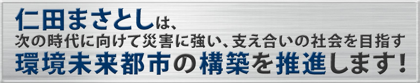 そこで、横浜市南区は、災害に強い、支えあう社会を目指す環境未来都市のモデルとなり、「人にやさしく、環境に優しい横浜」を未来に拓いて行く役割があると考えます。